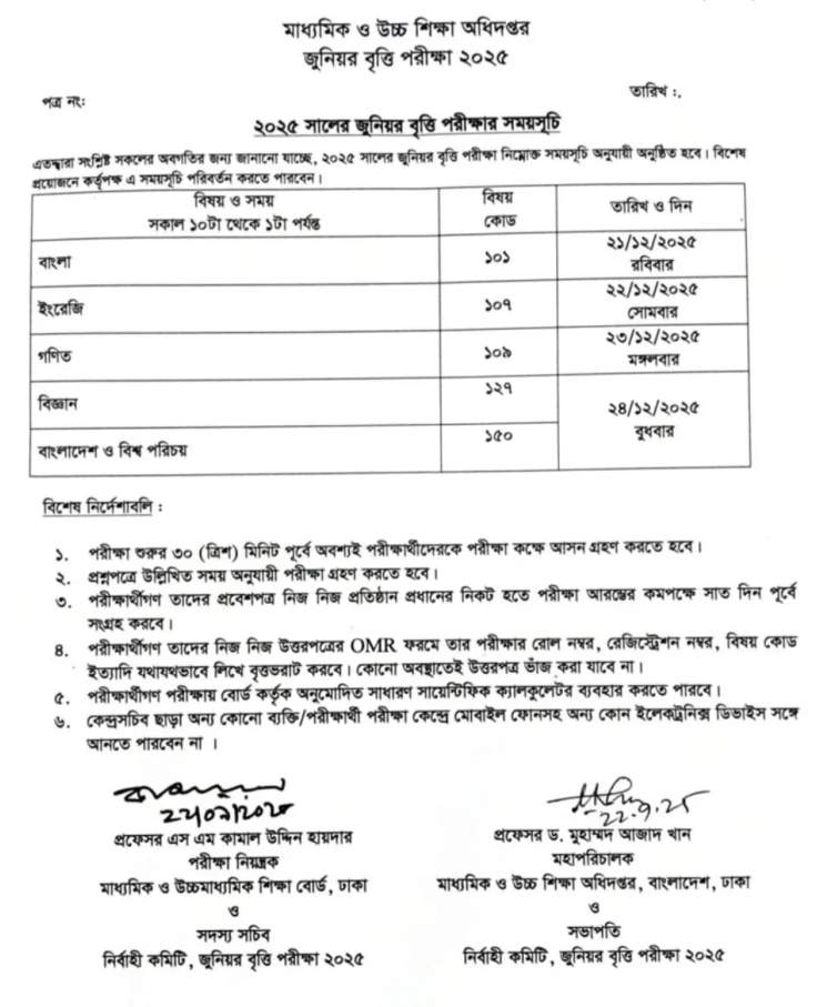 | 04 | জুনিয়র বৃত্তি পরীক্ষার রুটিন প্রকাশ, দেখুন এখানে | |
